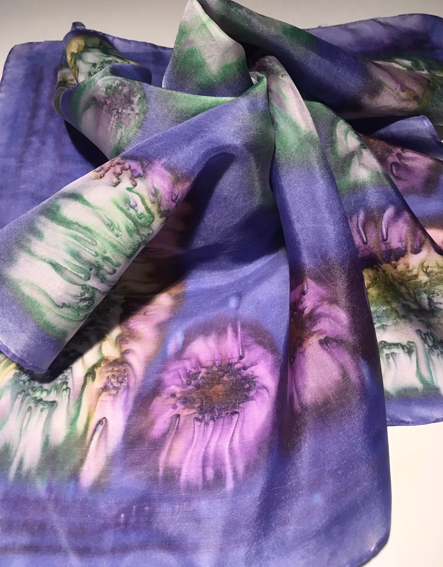 I lager. Antal: 1 156 - Hidden pond 650 kr Lägg i korgen Artikelnummer: 156 Leverantör: Läckra isblommor i ljusa vit-lila-grönt skapade med saltteknik med bladverk ikring. Blålila bakgrund med skiftande inslag i ljusare blått.60x60 cm32g