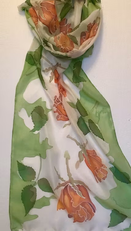 I lager. Antal: 1 266 - My Rosegarden 850 kr Lägg i korgen Artikelnummer: 266 Leverantör: I ett regn av rosor. Härligt ljuv och romantisk med roströda rosor mot naturvit botten. Milt grön inramning med mörkare gröna rosenblad längst med sjalens långsidor.45x180 cm22g