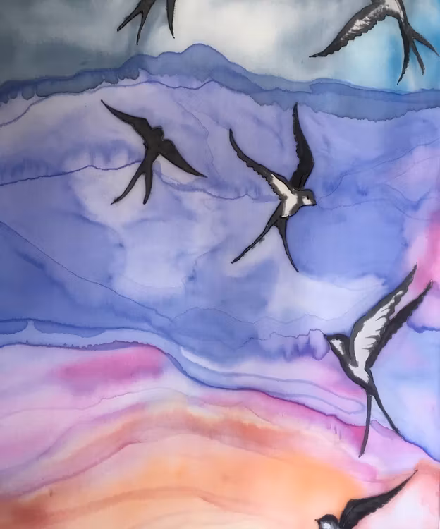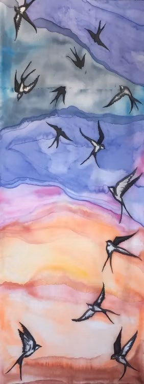 278 Early Summer Morning 950 kr Produkten är tyvärr slut i lager. :( Artikelnummer: 278 Leverantör: Vårkänslor eller sommarlängtan? Vem blir inte lycklig av svalor som svingar sig glatt och lätt upp mot en försommarhimmel. Lätta fräscha färger och fria flygande svalor.45x180 cm32g