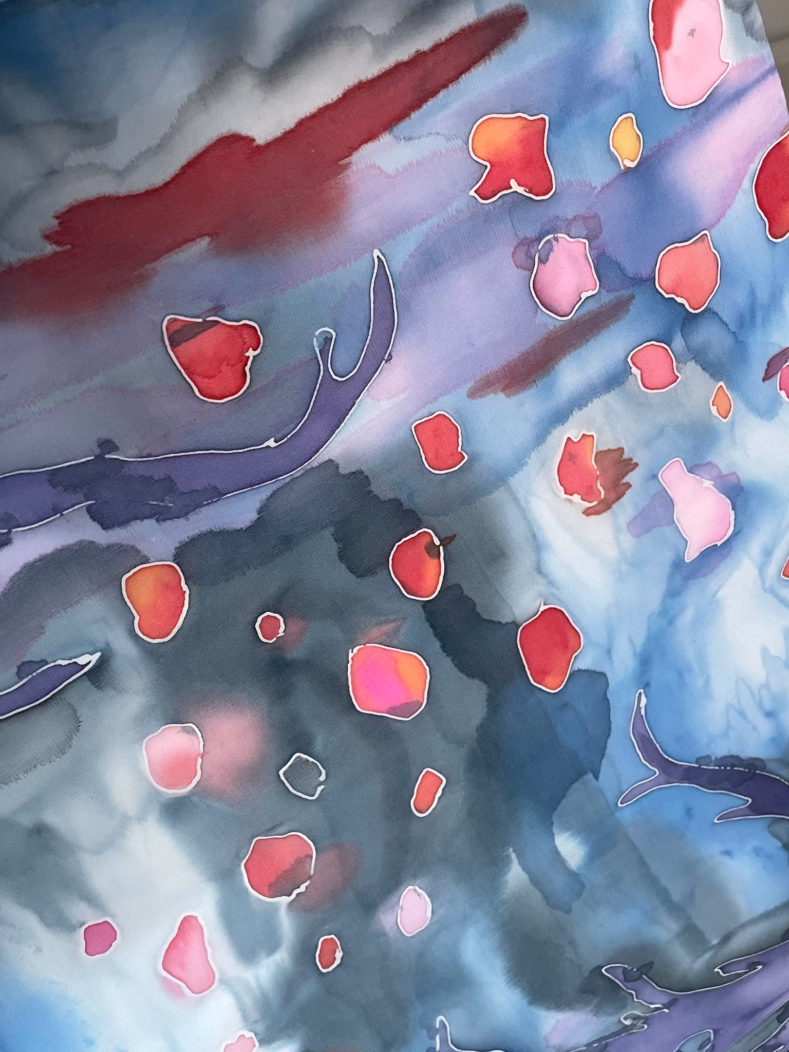 Trolska färger, skuggor som lurar och spretiga träd med mossiga grenar. En scarf från glimrande är inte bara ett bara ett plagg i underbart naturmaterial det är också wearable art. Ett unikt konstverk, en story, en känsla. Att den dessutom är snygg där den hänger på axeln är ingen nackdel precis.