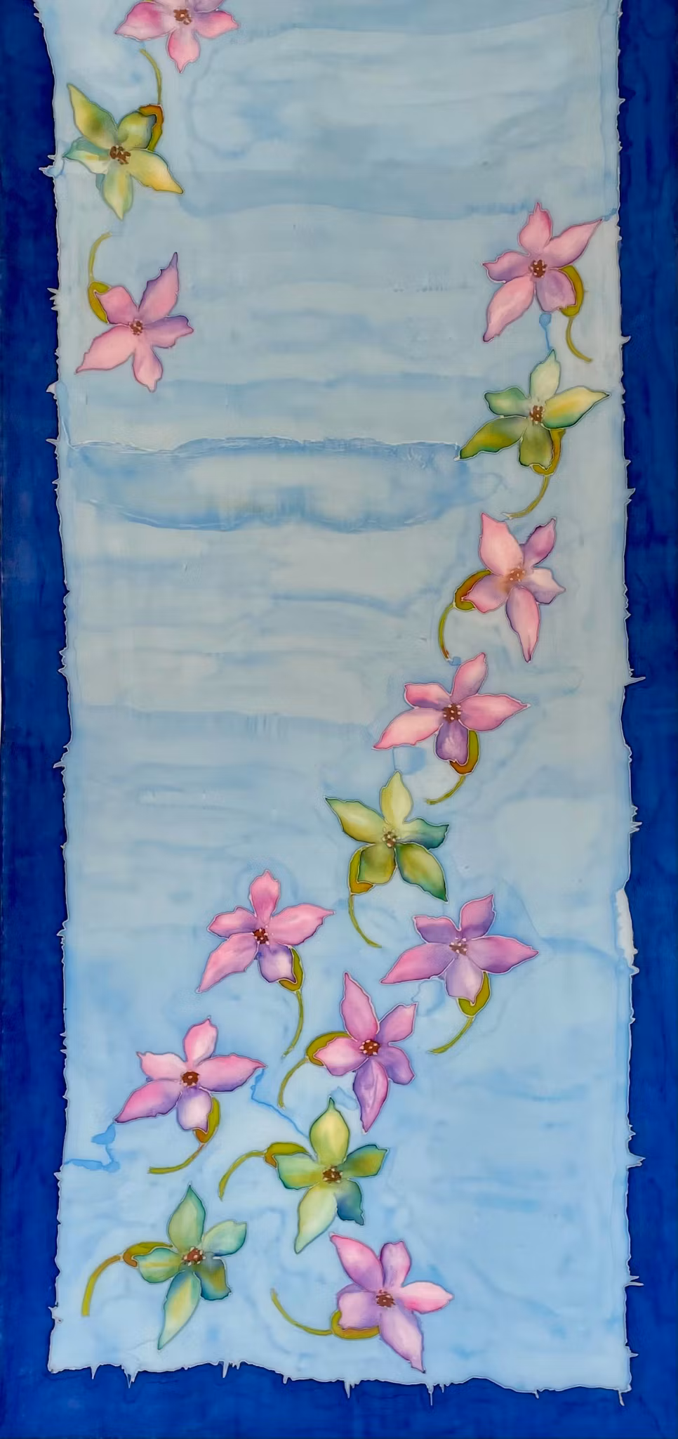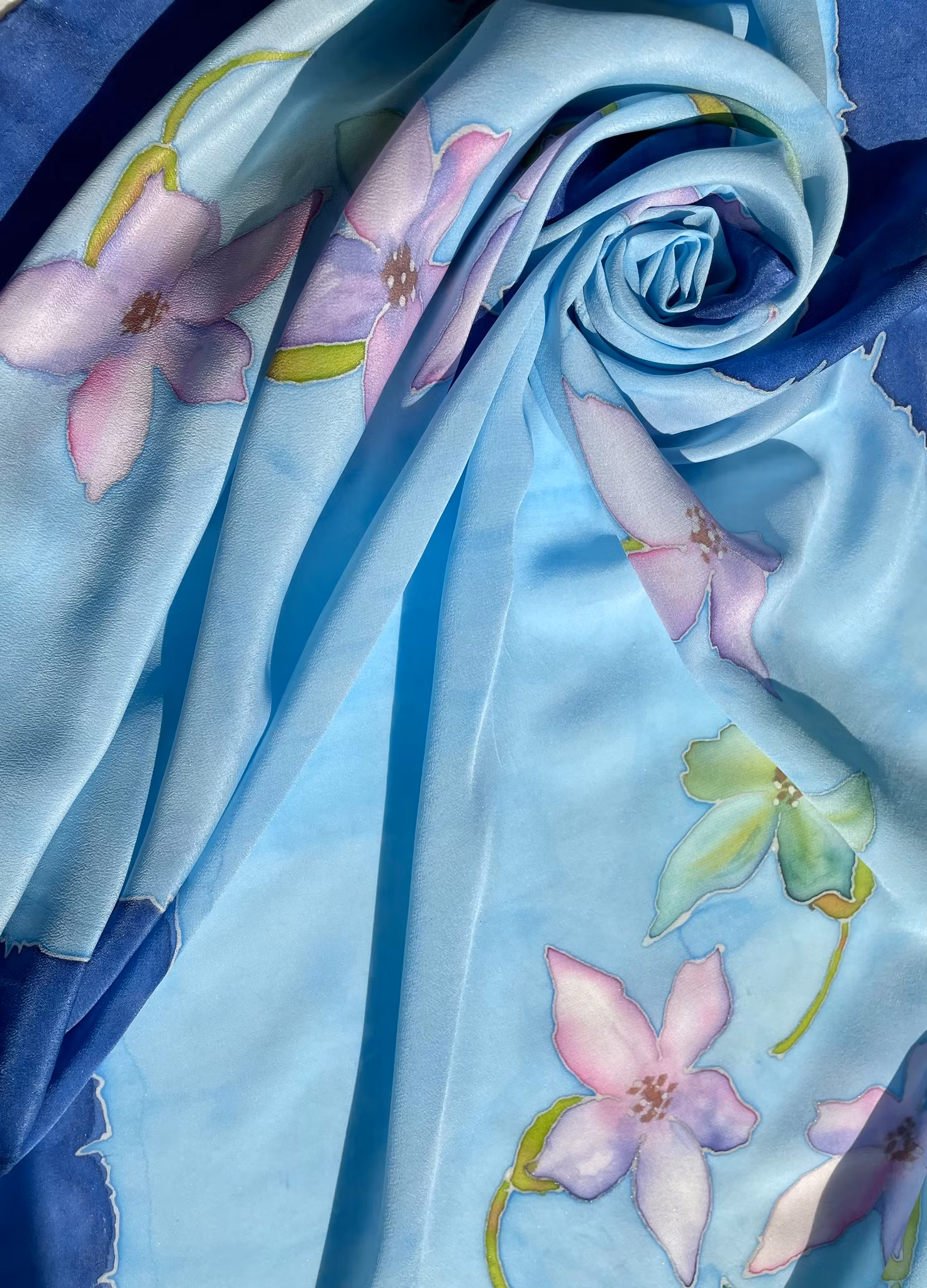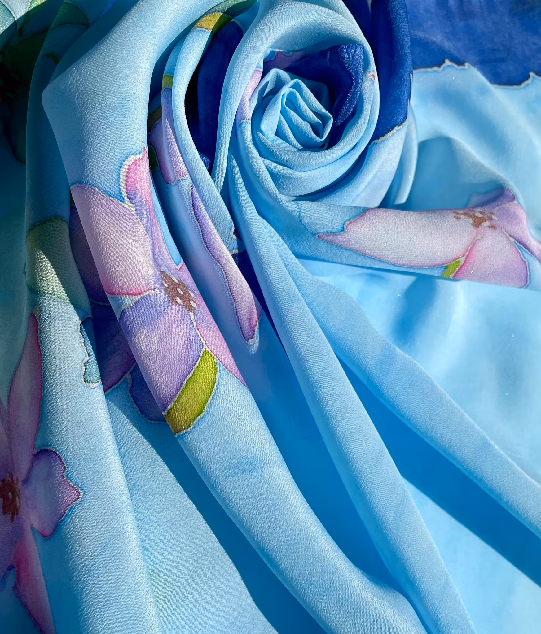 337 - Soft and Strong 1 050 kr Produkten är tyvärr slut i lager. :( Artikelnummer: 337 Leverantör: Det lite strikt kornblåa ramar in det himmelsblåa där små blyga blomster i syrenrosa och mildgröna nyanser brer ut sig. Enkelt och ljuvt i fin harmoni.50x180 cmCrêpe de Chine