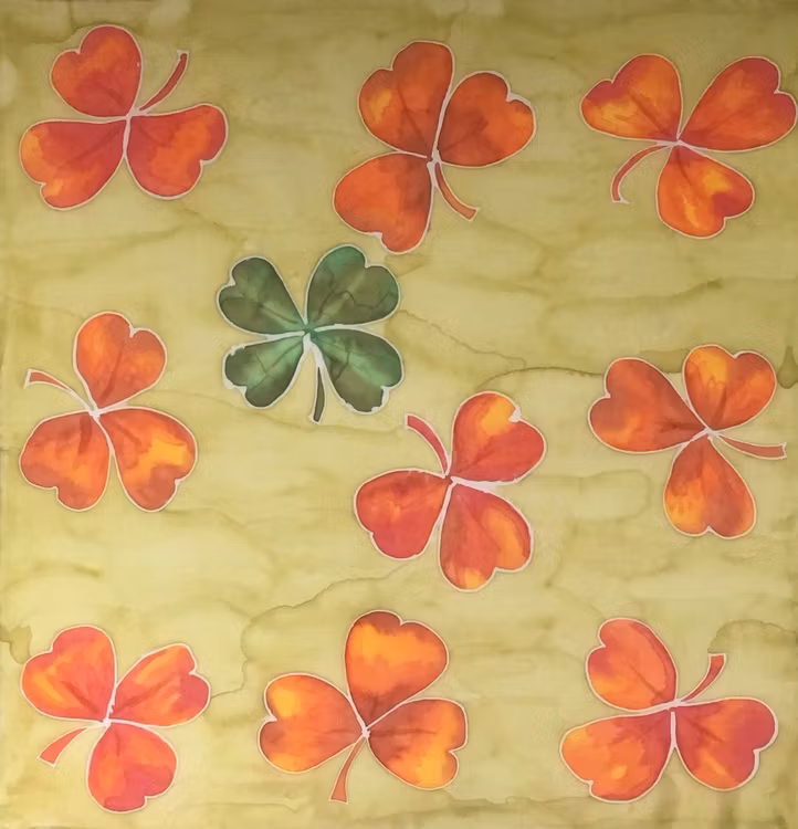 I lager. Antal: 1 221 - My Lucky Day 650 kr Lägg i korgen Artikelnummer: 221 Leverantör: Ett grönt lyckobringande fyrklöver bland treklöver i varmt rödorange färger mot en ljust olivgröngul bakgrund.60x60 cm32g