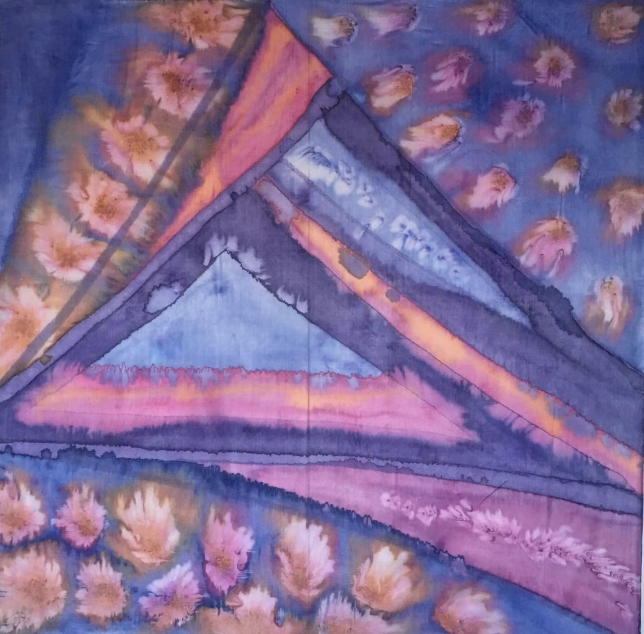196 - Wishful Sight 750 kr Produkten är tyvärr slut i lager. :( Artikelnummer: 196 Leverantör: Rosalila, lavendel och jeansblått med inslag av cognacsgult i ett abstrakt mönster där färgerna harmonierar med varann. Inramat av isblommor skapade med saltteknik.75x75 cm22g
