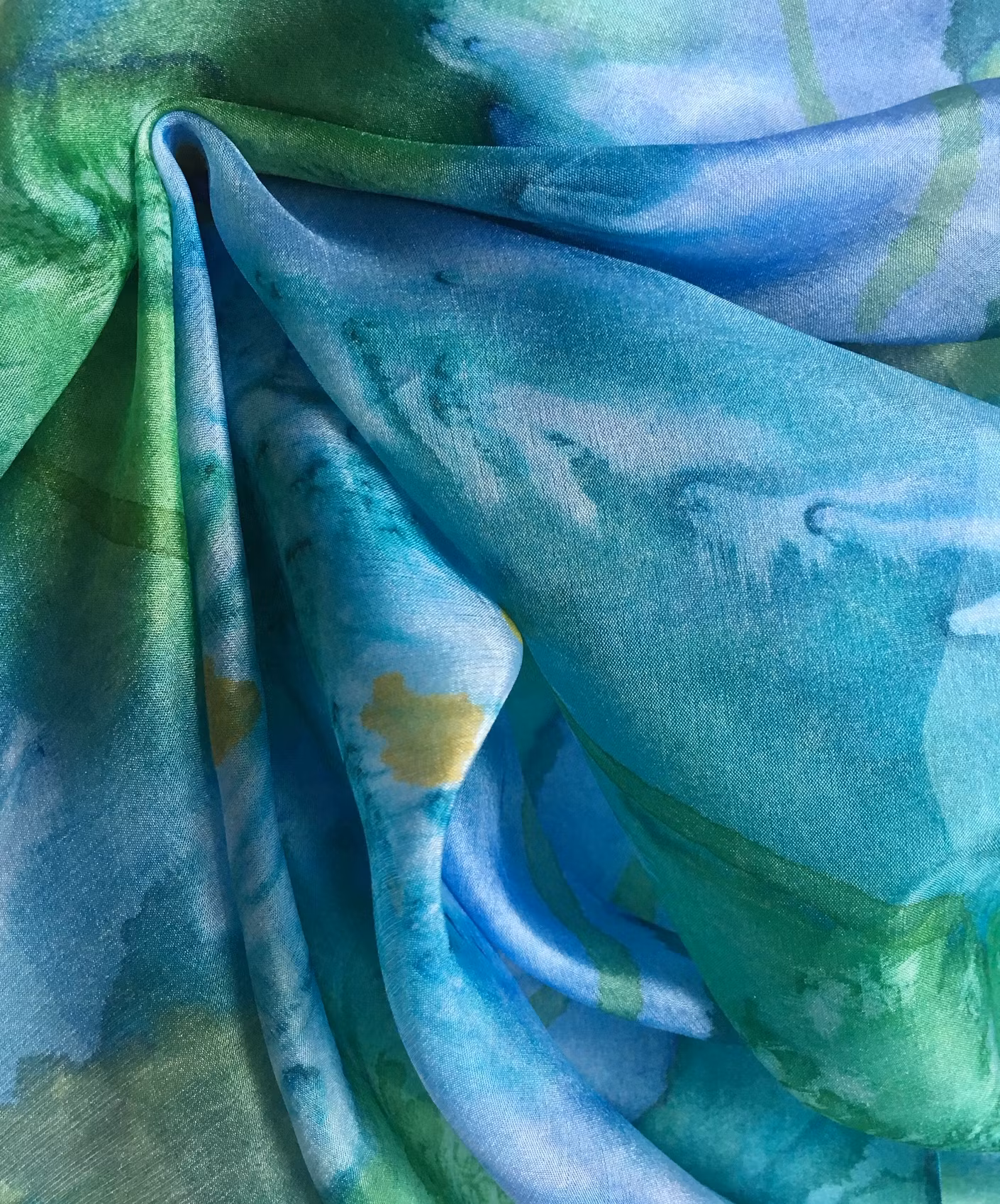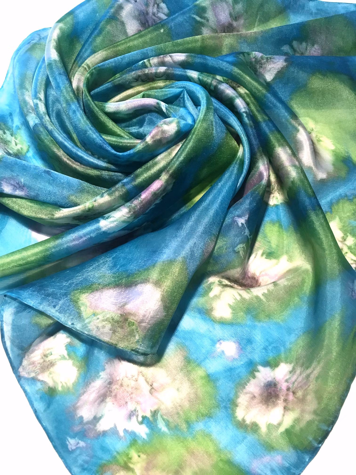 I lager. Antal: 1 208 - Flowers in the stream 750 kr Lägg i korgen Artikelnummer: 208 Leverantör: Ljust lilavita näckrosor och baldgrönt som flyter fram på ett turkosblå skiftande vatten. Stor, skir sidensjal en riktig favorit att använda gång efter gång vid många olika tillfällen.75x75 cm22g